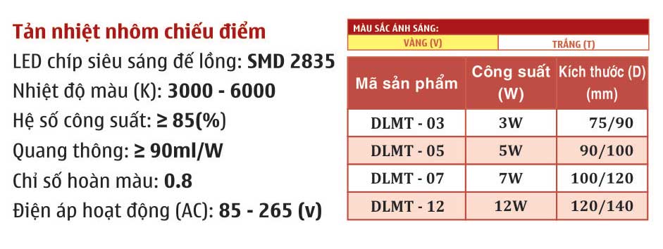 LED Downlight – Tản nhiệt nhôm chiếu điểm